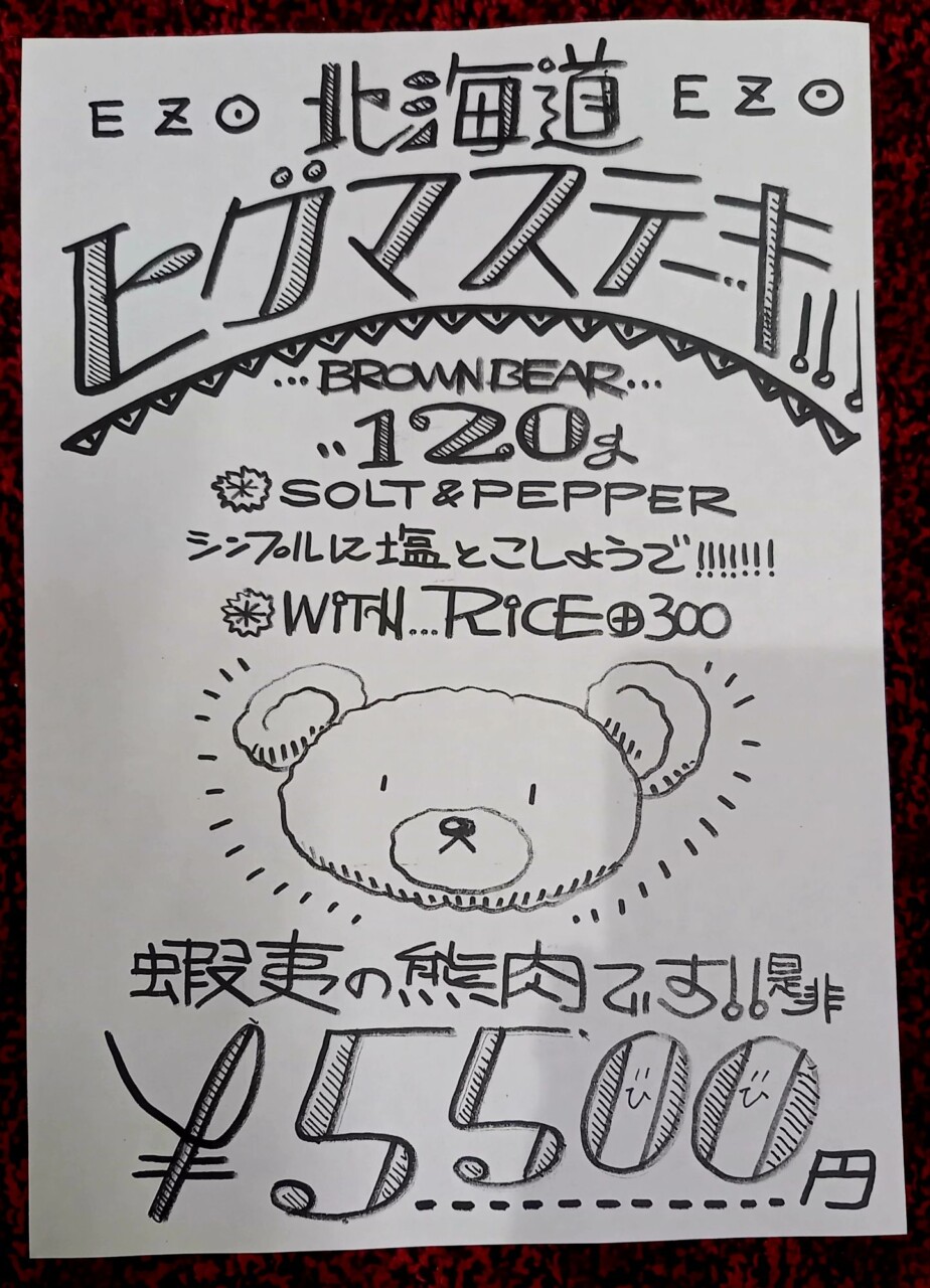 蝦夷ひ熊肉入荷しました!