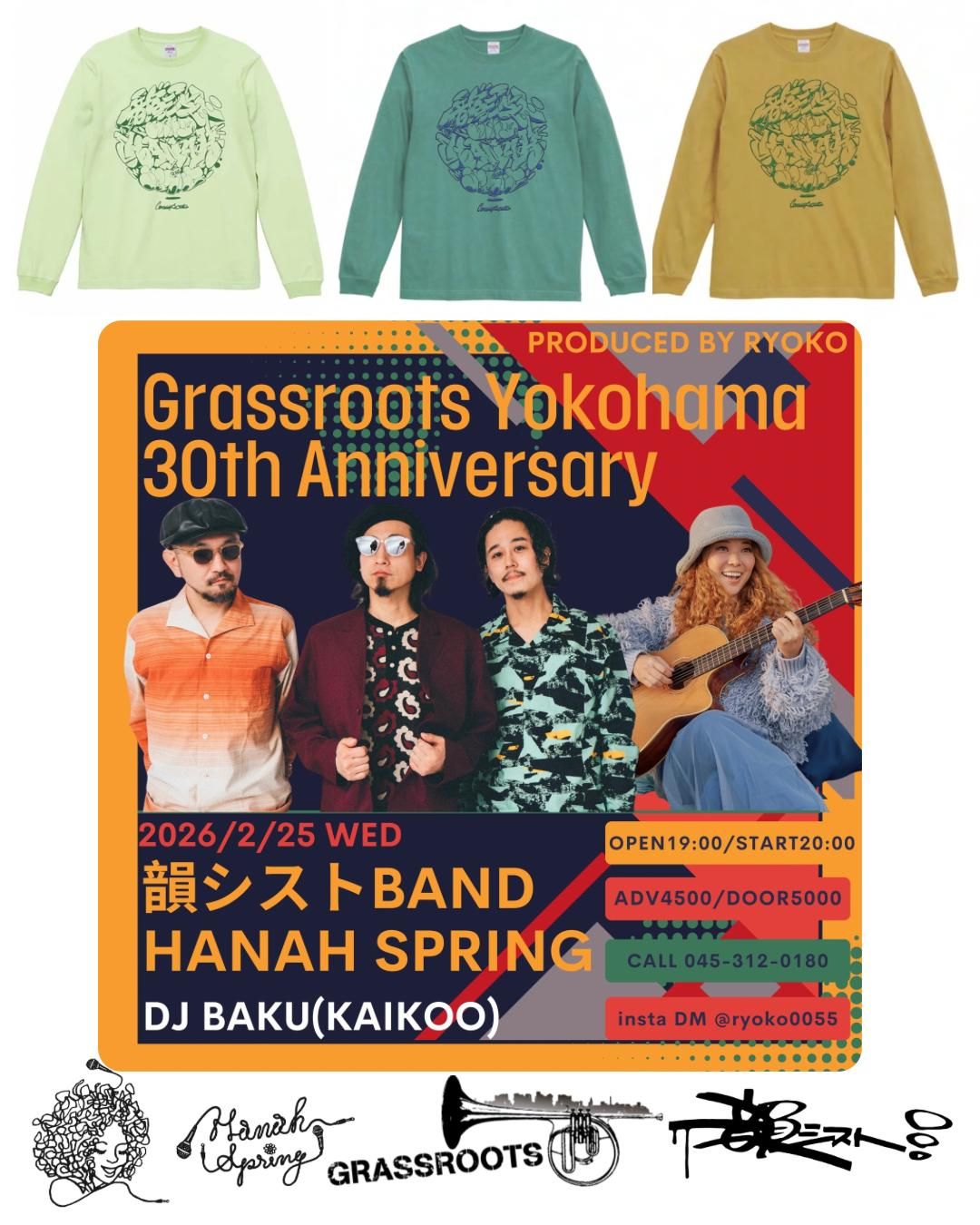 Hanah Spring & 韻シストBAND & Grassroots 30周年コラボTシャツ ロンT Designed by SUBLOW 受注販売します